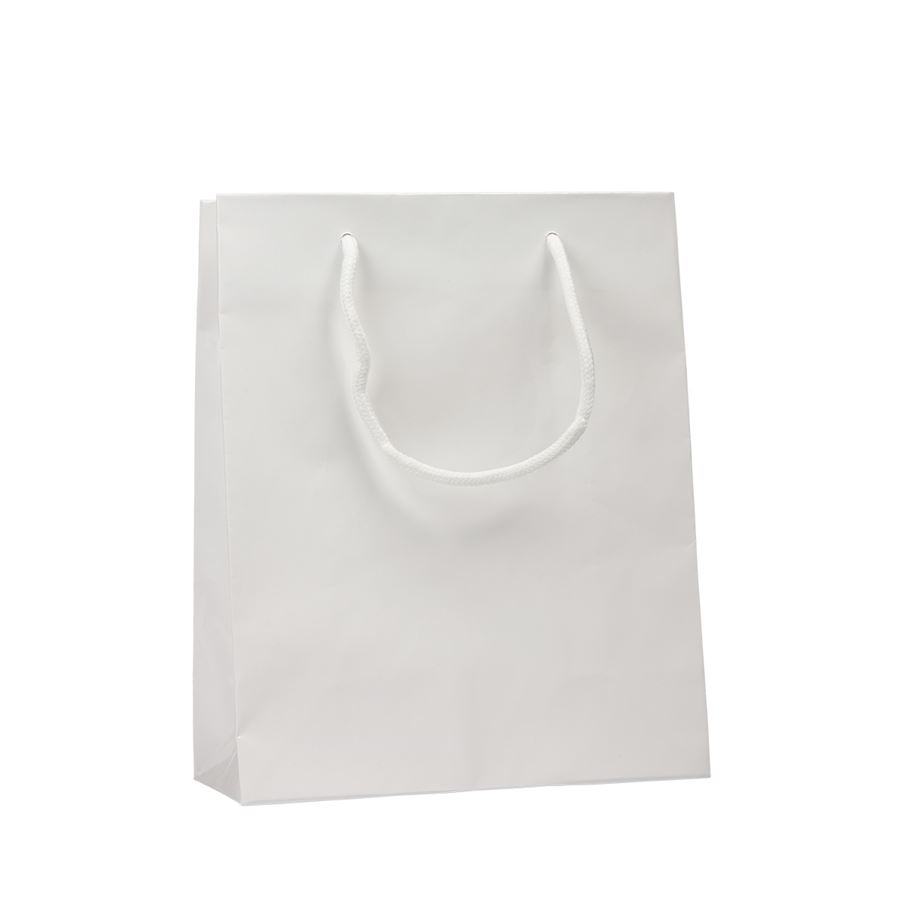 Elegantní bílá dárková taška z kvalitního křídového papíru s lesklou laminací a textilními šňůrkami. Ideální pro balení dárků, firemní prezentace či sváteční příležitosti.Taška je doplněna textilními šňůrkami, které zaručují pohodlné nošení a dotvářejí elegantní vzhled. Ideální pro kosmetiku, svíčky, menší lahve, dárkové sady nebo jiné drobné předměty.
