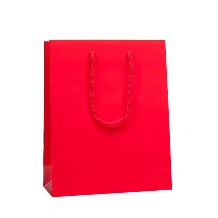 Elegantní červená dárková taška z kvalitního křídového papíru s lesklou laminací a textilními šňůrkami. Ideální pro balení dárků, firemní prezentace či sváteční příležitosti.Taška je doplněna textilními šňůrkami, které zaručují pohodlné nošení a dotvářejí elegantní vzhled. Ideální pro kosmetiku, svíčky, menší lahve, dárkové sady nebo jiné drobné předměty.