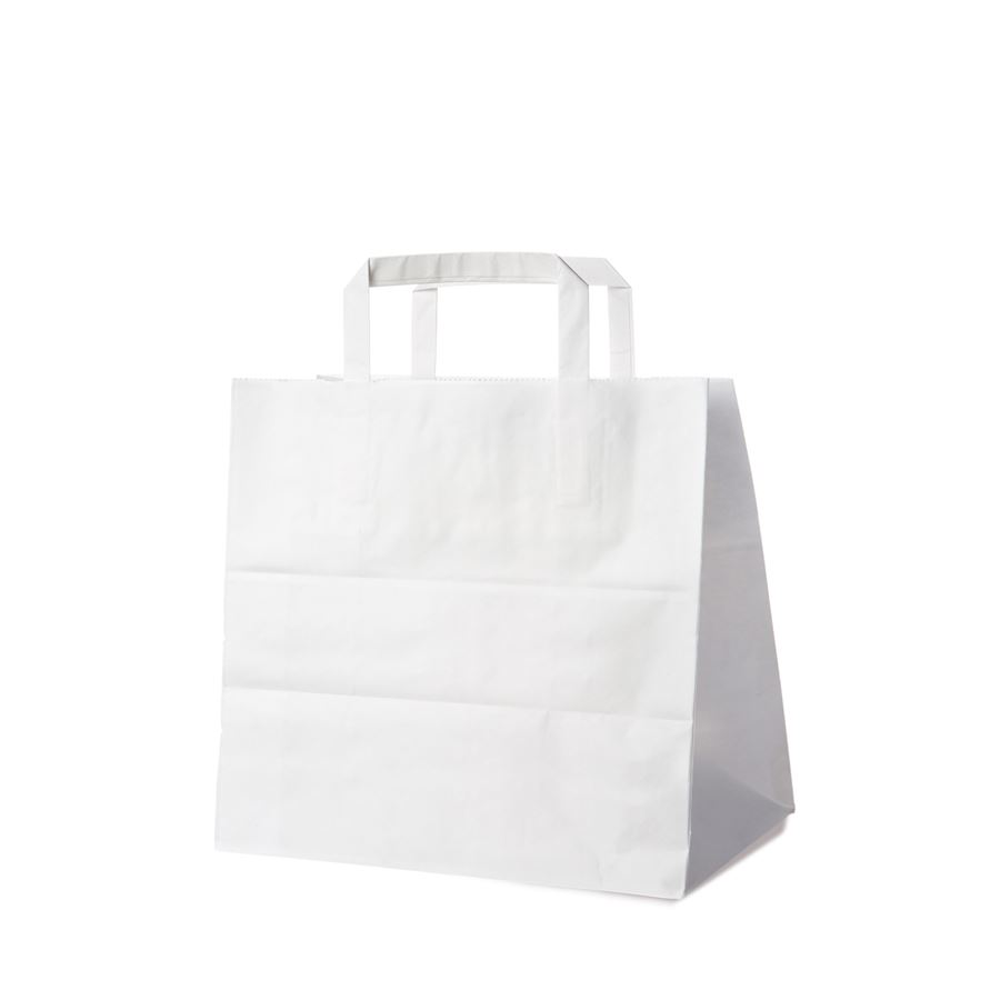 Praktická a univerzální bílá papírová taška z certifikovaného FSC Mix papíru je ideální pro balení drobnějších nákupů, dárků, firemních materiálů či produktů z butiků. Taška je ekologická, pevná a díky svým kompaktním rozměrům se skvěle hodí do každého provozu.