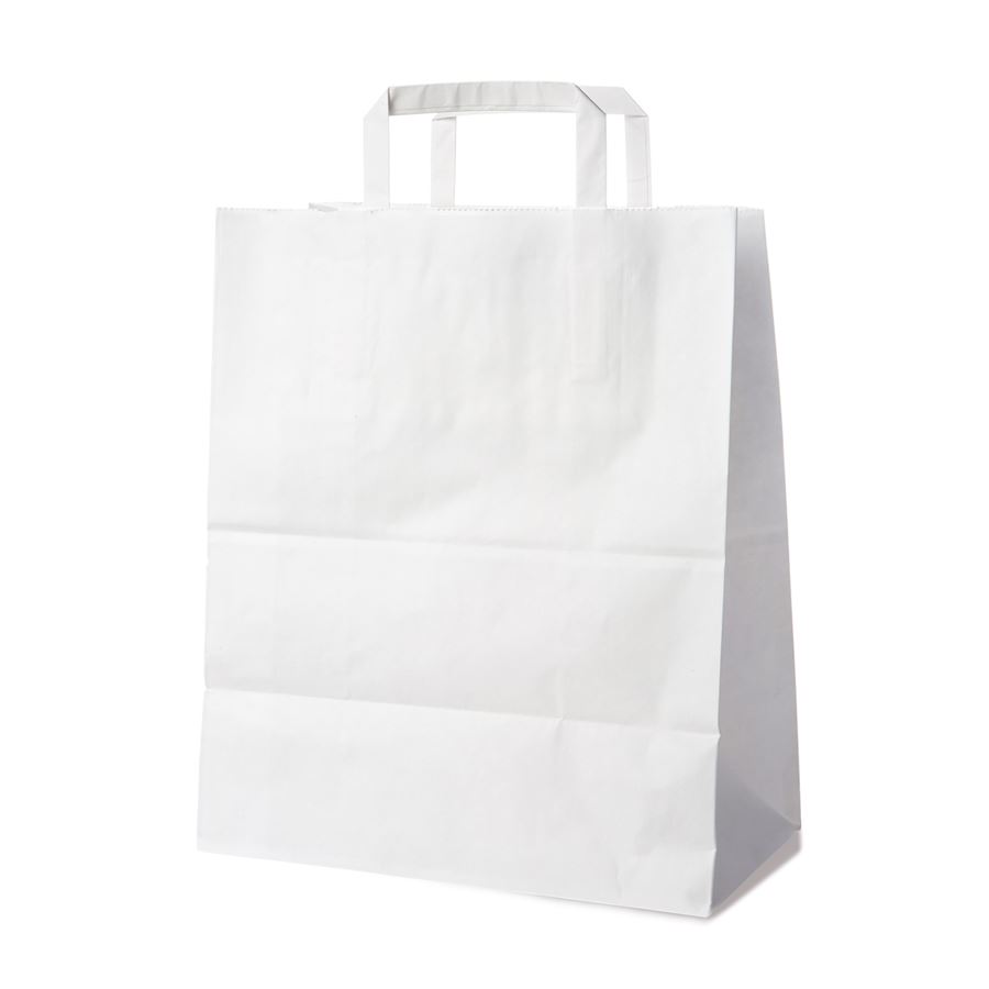 Praktická a univerzální bílá papírová taška z certifikovaného FSC Mix papíru je ideální pro balení drobnějších nákupů, dárků, firemních materiálů či produktů z butiků. Taška je ekologická, pevná a díky svým kompaktním rozměrům se skvěle hodí do každého provozu.