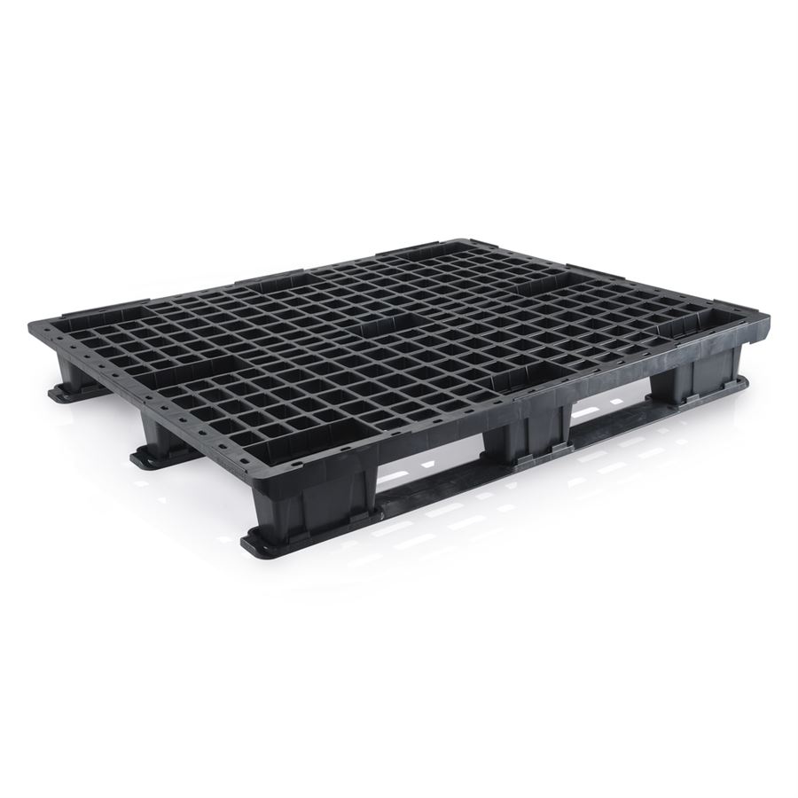 Je vyrobena z pevného recyklovaného plastu (PE regranulát), díky čemuž je lehčí než dřevěná paleta, ale přitom velmi pevná, stabilní a odolná vůči vlhkosti, chemikáliím i mechanickému poškození.