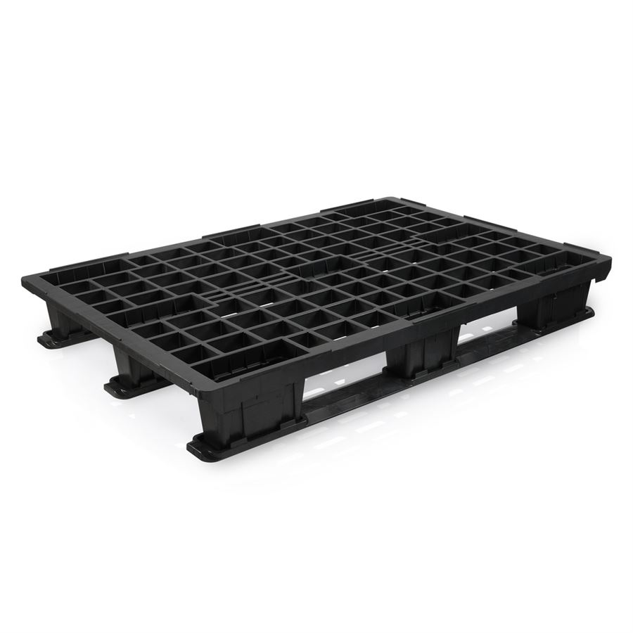 Odolná plastová paleta 1200 × 800 mm vyrobená z recyklovaného PE regranulátu představuje ideální řešení pro přepravu, skladování i export zboží. Její robustní konstrukce s ližinami umožňuje bezpečné a stabilní uložení zboží, zatímco stohovatelný design šetří místo při skladování a přepravě prázdných palet.