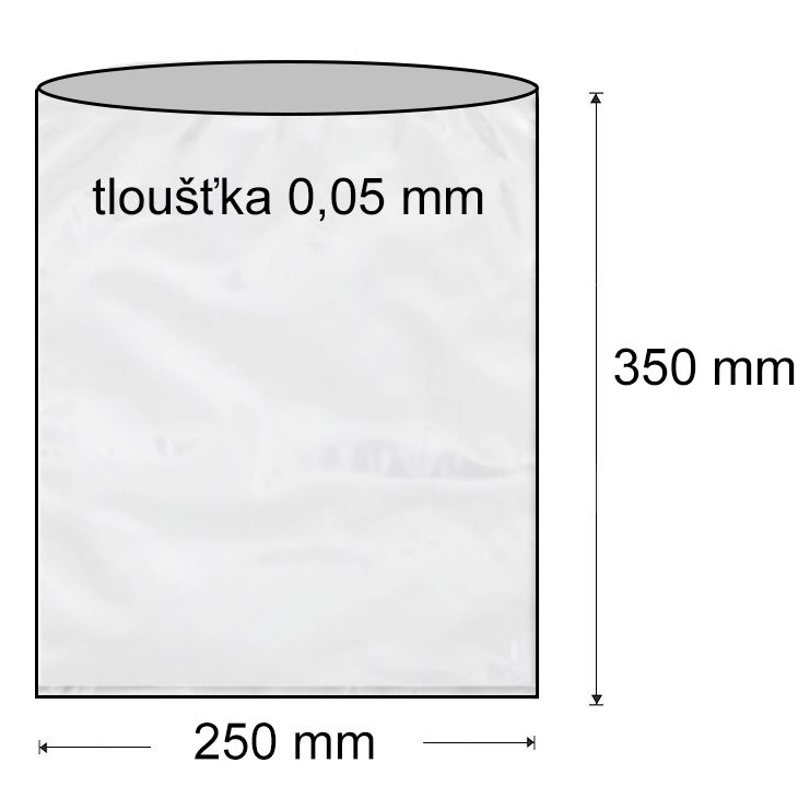 Sáček polyetylénový plochý 250 x 350 mm, síla 50 my (1000 ks) - transparentní