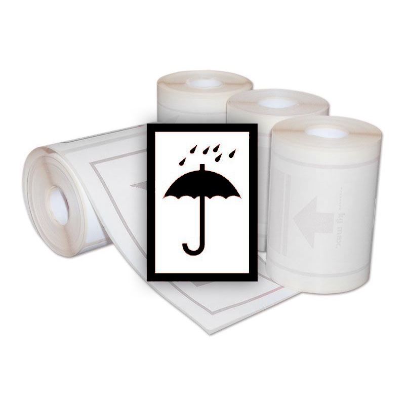 Samolepicí manipulační značka Chránit před deštěm (100 ks)