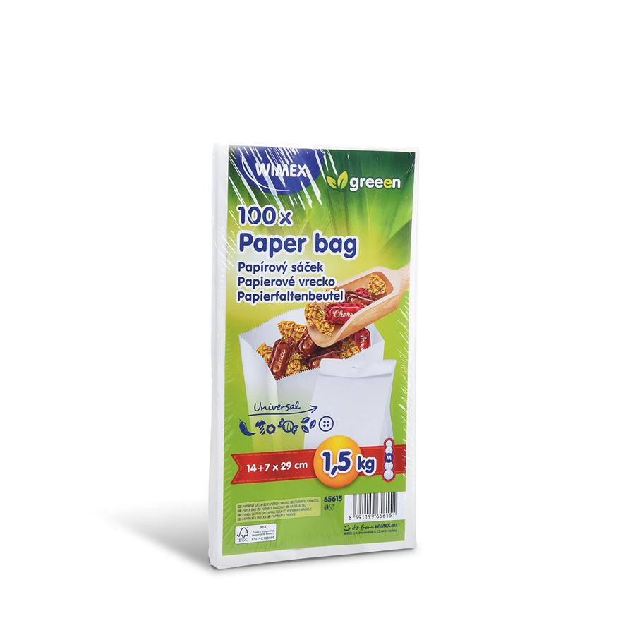 Velké balení 100 kusů bílých papírových svačinových sáčků. Praktické, ekonomické a ekologické řešení pro balení svačin do školy, práce i na výlety. Jsou vyrobeny z kvalitního bílého papíru, který je dostatečně pevný a zároveň prodyšný, čímž pomáhá udržet čerstvost potravin.
