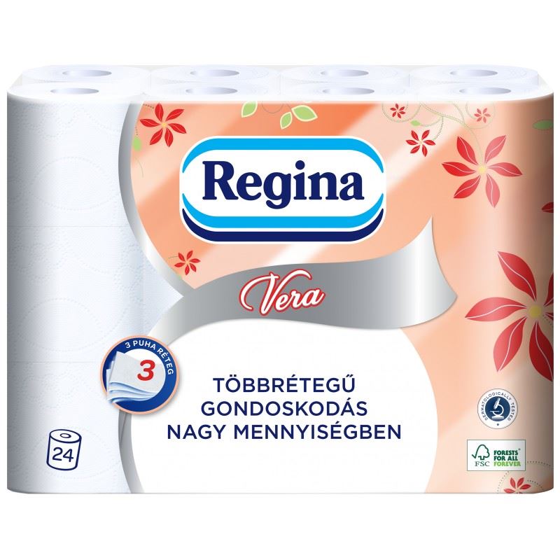 Toaletní papír Regina Vera v balení 24 rolí představuje vysoce kvalitní hygienický produkt určený pro domácnosti i provozy, kde je kladen důraz na komfort, jemnost a pevnost. Díky 3 vrstvám z 100% celulózy poskytuje maximální měkkost a zároveň vysokou odolnost při běžném každodenním použití.