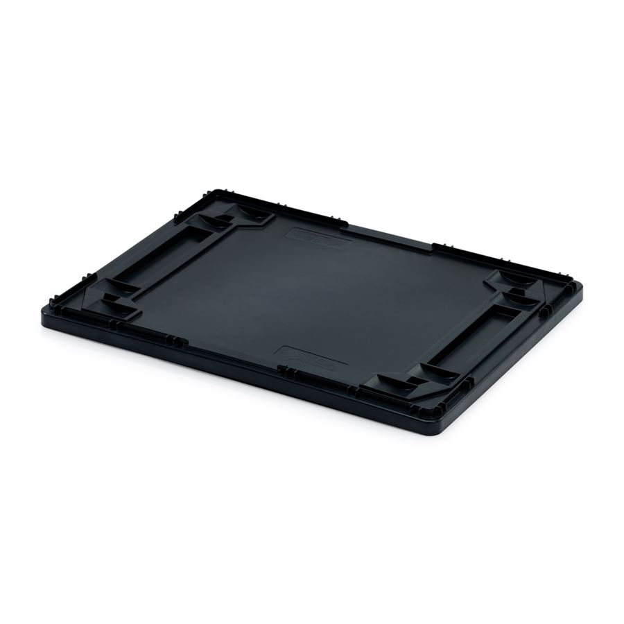 Víka k ESD EURO přepravkám jsou vyrobena z elektricky vodivého plastu. Spolehlivě zabraňují elektrostatickému výboji a odvádí již stávající výboj.